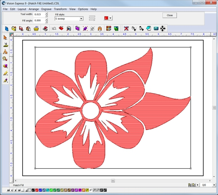 - The hatch fill will be applied. Adjust the tool options as desired and select Close from the toolbar menu. The file is ready to be sent to the engraver.